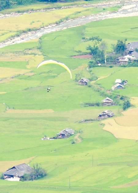 Patrick: Vâng, như anh thấy đấy, tôi đã cố gắng bay nhiều vòng trên đỉnh đẹo Khau Phạ, lượn khắp cả khu vực lòng chảo thung lung, liệng qua từng khu dân cư, vòng qua các con suối, hướng đến những khu vực có người gặt lúa… Tôi thực sự muốn đem về nhà những hình ảnh đầy đủ nhất về điểm bay này bởi nó quá đẹp và cũng bởi, chắc chắn chưa có phi công quốc tế nào có được bay ở đây như tôi.